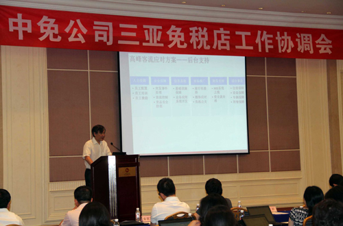海南離島旅客免稅購物政策自2011年4月20日在中免集團(tuán)三亞免稅店試點(diǎn)運(yùn)營至今已近三月。來自中免集團(tuán)總部、三亞免稅店、香港中免公司各相關(guān)業(yè)務(wù)部門的60余位負(fù)責(zé)人及業(yè)務(wù)骨干參加了此次會(huì)議。中免集團(tuán)盧路總裁,趙鳳副總裁、王軒副總裁、曾江前總會(huì)計(jì)師、顧納新總裁助理等領(lǐng)導(dǎo)出席了會(huì)議并參與分組研討。