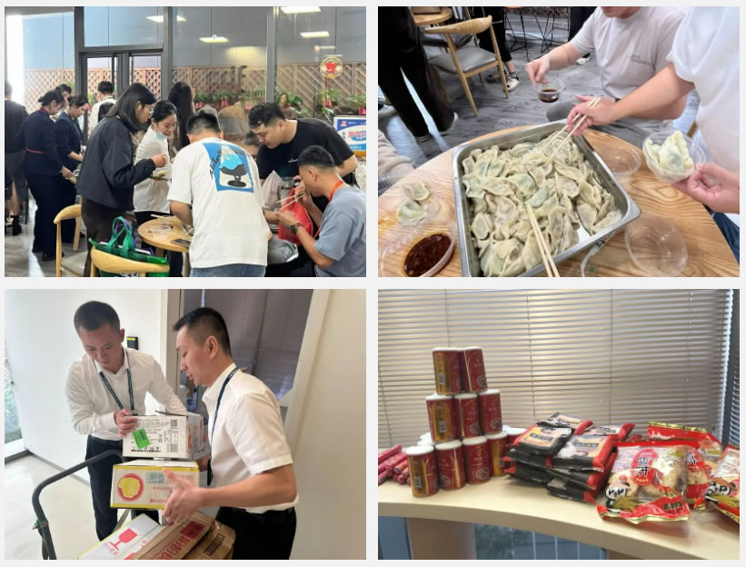 “開飯啦,大伙快來嘗一嘗!這里有現(xiàn)包的白菜肉、酸菜肉、韭菜肉、香菇肉的餃子;黑芝麻湯圓和花生餡湯圓在那邊??纯聪氤允裁础!睙狒[的茶水間人聲鼎沸,大家排隊(duì)打完餐后圍坐在圓桌前開始享用美食。春節(jié)期間,中免鳳凰機(jī)場(chǎng)店里年味十足,六樓辦公區(qū)保障餃子和湯圓,機(jī)場(chǎng)隔離區(qū)休息室還擺放了零食供職工們隨時(shí)補(bǔ)充能量,讓職工在堅(jiān)守的同時(shí)感受來自公司的濃濃關(guān)愛和“家”的溫暖。