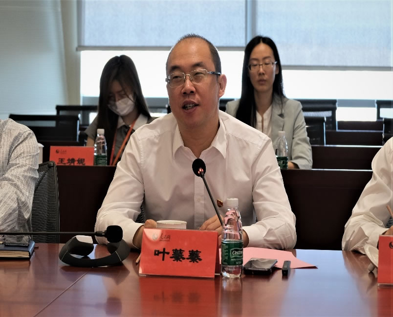 參觀結(jié)束后,雙方進(jìn)行了座談交流。人民網(wǎng)黨委書記、董事長(zhǎng)、總裁葉蓁蓁首先介紹了人民網(wǎng)的主責(zé)業(yè)務(wù)。他說,人民網(wǎng)始終履行黨網(wǎng)職責(zé),積極落實(shí)習(xí)總書記關(guān)于推動(dòng)媒體融合發(fā)展提出的全程、全息、全員、全效的“四全”媒體論述。近年來,人民網(wǎng)一直是媒體融合、轉(zhuǎn)型發(fā)展的引領(lǐng)者。人民網(wǎng)深研內(nèi)容科技,聚焦一個(gè)內(nèi)容主業(yè),在內(nèi)容原創(chuàng)、內(nèi)容運(yùn)營(yíng)、內(nèi)容風(fēng)控、內(nèi)容聚合分發(fā)四個(gè)內(nèi)容業(yè)務(wù)上全面發(fā)力,在內(nèi)容產(chǎn)業(yè)新的社會(huì)化分工的關(guān)鍵“生態(tài)位”發(fā)揮了引領(lǐng)、連接、標(biāo)準(zhǔn)制定等關(guān)鍵作用,探索實(shí)現(xiàn)從“黨管媒體”走向“黨管數(shù)據(jù)”,不斷鞏固中央重點(diǎn)新聞網(wǎng)站“龍頭”地位,逐步發(fā)展成為內(nèi)容科技領(lǐng)軍企業(yè)。