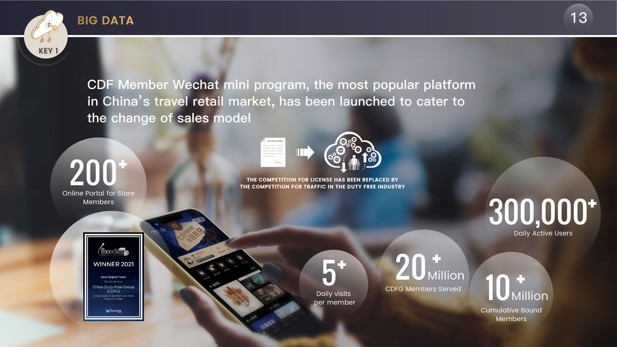 陳國強(qiáng)表示,"我們推出了基于會員的線上平臺cdf會員購,此外還積極迎合銷售模式的變化,推出了基于中免2000多萬會員的會員小程序,在流量為王的時(shí)代建立了中國旅游零售市場最大的流量平臺。"他介紹稱,"通過兩年多的運(yùn)營,該會員小程序日活躍用戶達(dá)30多萬,成為中免甚至是中國旅游零售重要的流量平臺,未來機(jī)場口岸的客流恢復(fù)后還將成為打通中免線上線下的重要流量入口。"這一舉措也得到了業(yè)內(nèi)的高度認(rèn)可,榮獲穆迪2021年度最佳數(shù)字團(tuán)隊(duì)獎(jiǎng)。