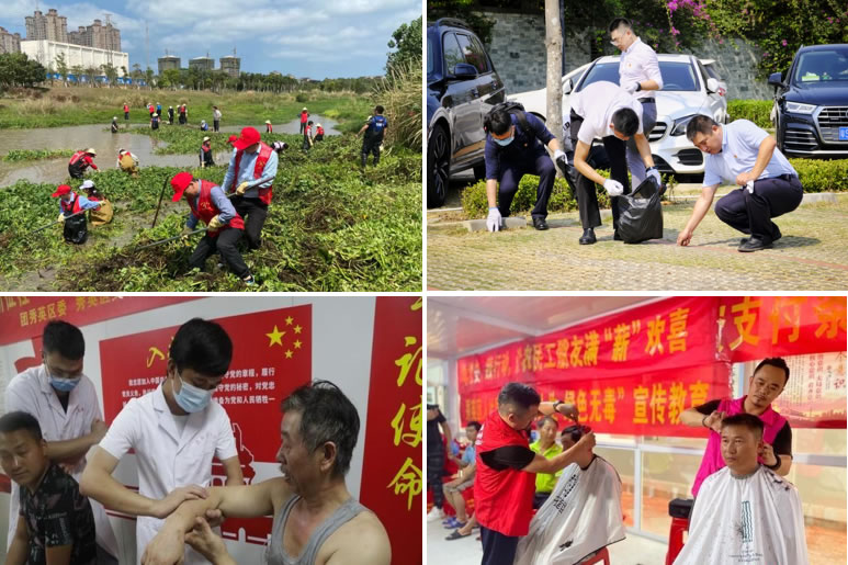 中免(海口)投資公司黨支部聚焦服務工程建設、豐富企業(yè)文化、踐行社會責任等方面把實事辦實辦好。為海口國際免稅城項目員工“送清涼”,購置了防暑防曬物資,備好冰鎮(zhèn)綠豆湯,不定期推出“驚喜菜”。精心打造“黨史文化墻”,設立“圖書角”,開展“微課堂”讀書活動,為員工訂閱報紙期刊,開展職工趣味運動會、友誼籃球賽,全面更新公司形象展示標識和宣傳欄,設置新人榜,不斷打造企業(yè)文化新亮點。黨支部聯(lián)合當?shù)毓?、共青團等機構(gòu)共同開展環(huán)保志愿活動和公益普法活動,提供免費體檢、義剪服務,以實際行動關愛自貿(mào)港基層建設者,彰顯央企風范。
